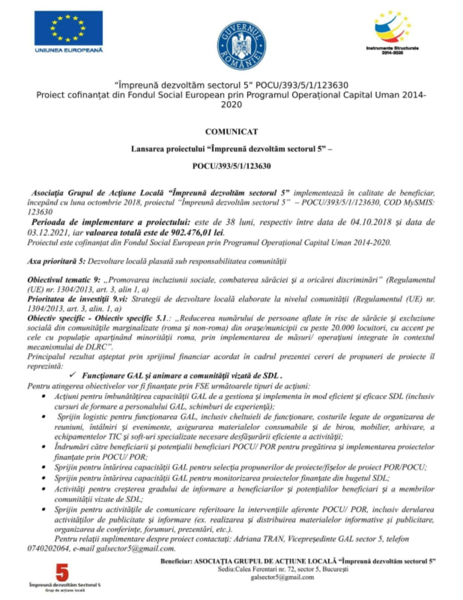 Comunicat privind lansarea proiectului „ Împreună dezvoltăm sectorul 5” carpomen2018-11-29T07:28:56+00:0029/11/2018| View Larger Image